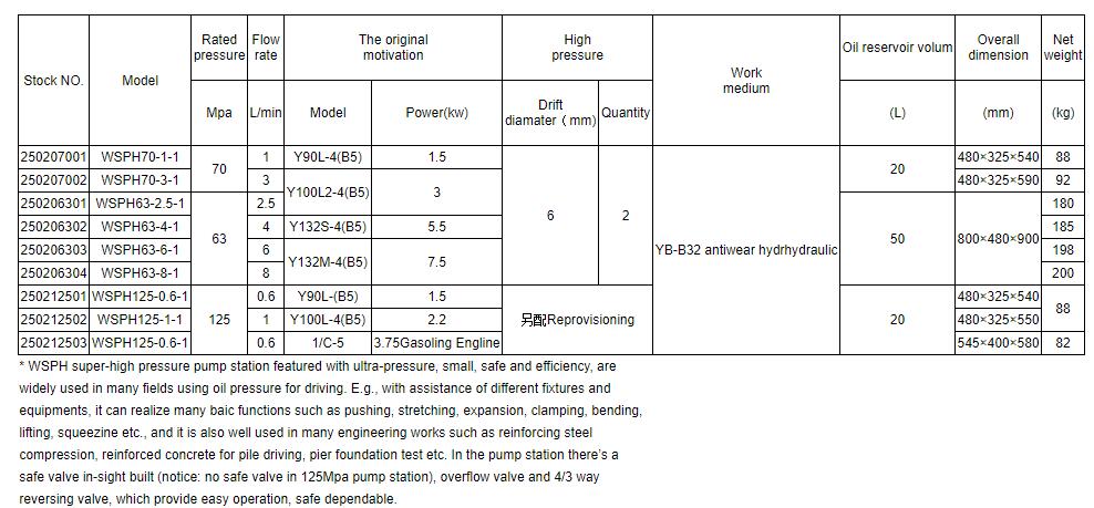 WSPH Ultra Pressure Electric Oil Pump Station