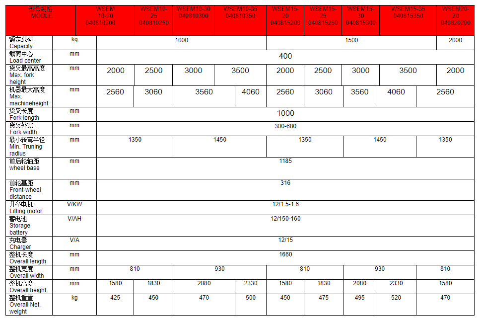 WSEM系列雙門架半電動堆高車