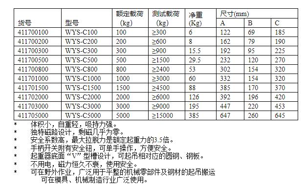 WYS-C系列強力永磁起重器